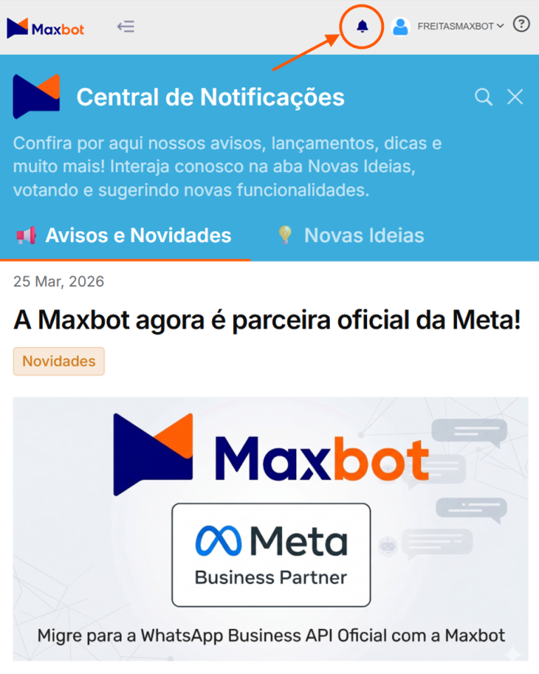 Você sabia que a Maxbot tem um canal direto de comunicação com você dentro da plataforma? A nossa Central de Notificações foi criada para que